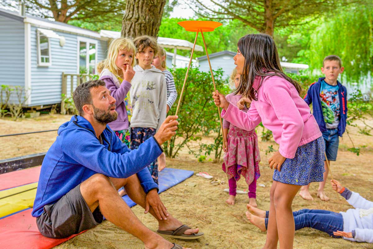 « Soucieux de vous divertir durant vos vacances à Quiberon, notre équipe vous propose un programme d’animations estivales riche et varié pour tout âge. En famille ou entre amis, venez profiter de nos équipements de loisir sur place. Notre camping réunit tous les ingrédients de vacances réussies en famille : convivialité autour d’une partie de pétanque, animations pour petits et grands et soirées dans la bonne humeur ! »