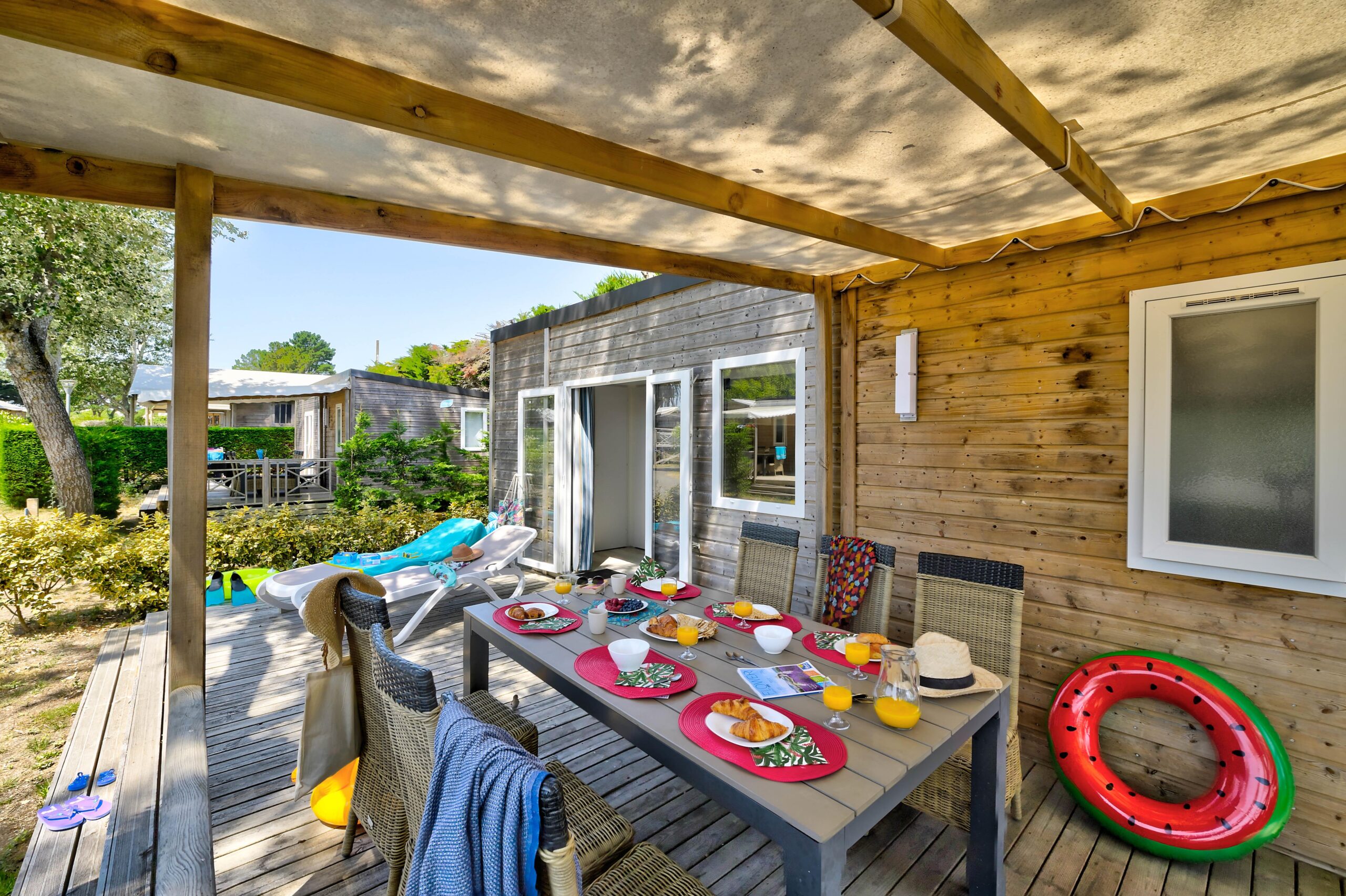 Tombez sous le charme de notre superbe Mobil-Home extérieur bois pour des vacances réussies.