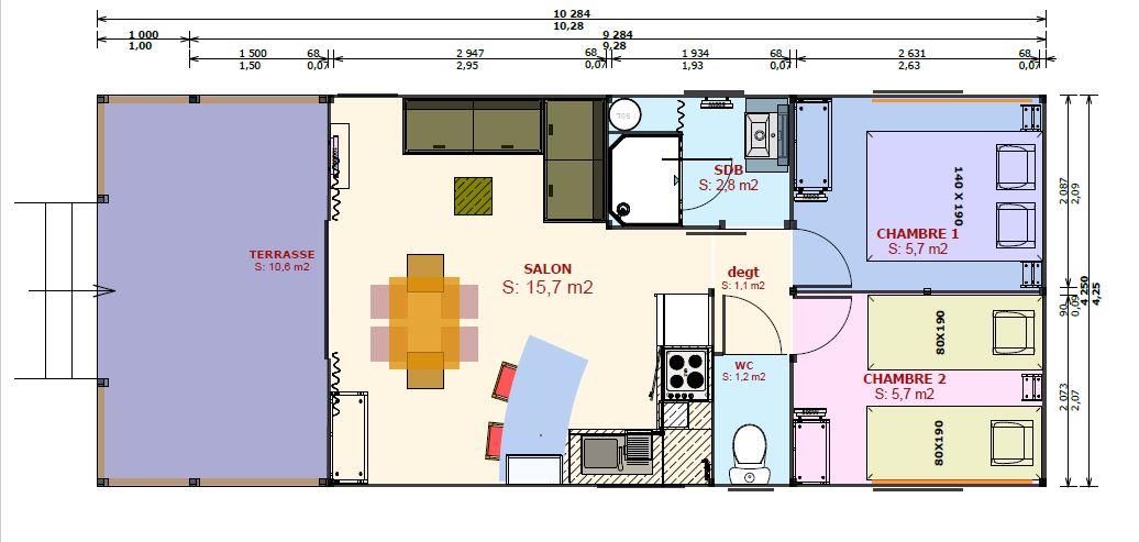 Retrouvez les prestations haut de gamme de notre mobil-home dernier cri conçu pour 4 personnes.